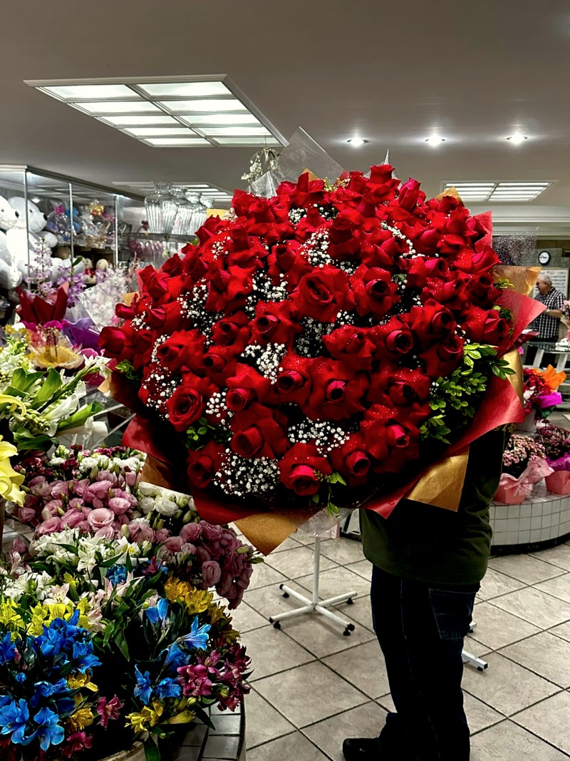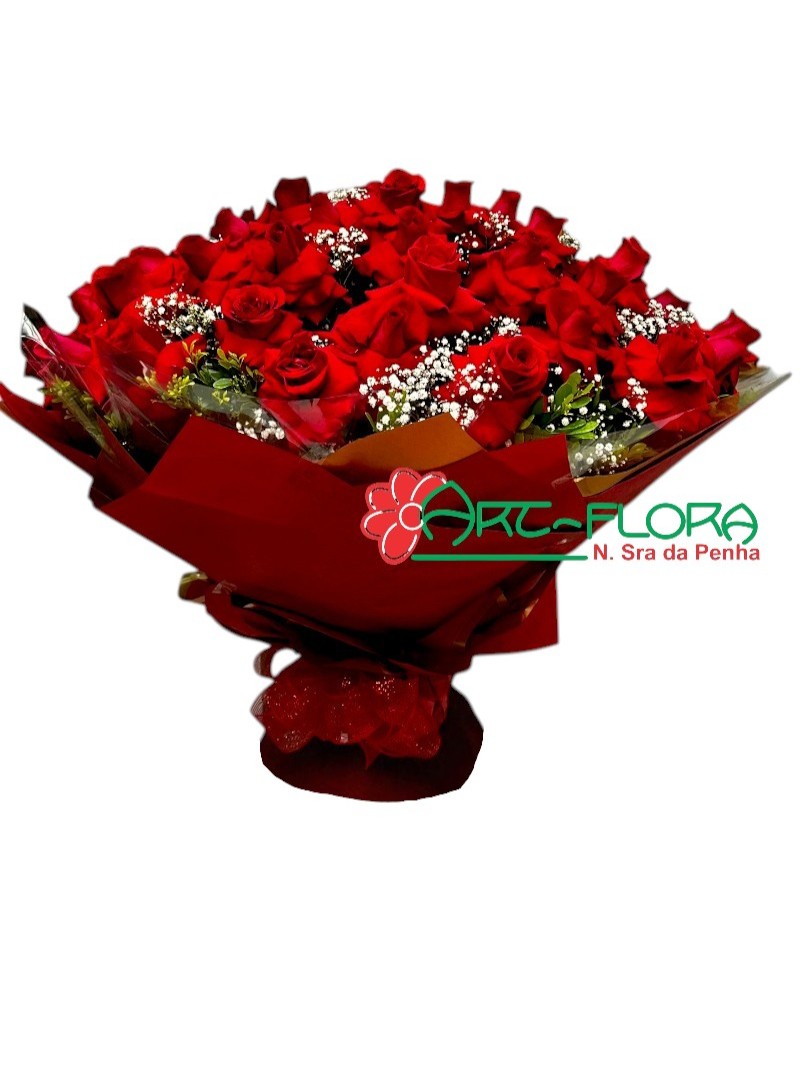 Buquê com 50 rosas colombianas é a expressão máxima de elegância, romantismo e grandiosidade. Um presente que fala por si só: luxuoso, marcante e inesquecível.Composição: