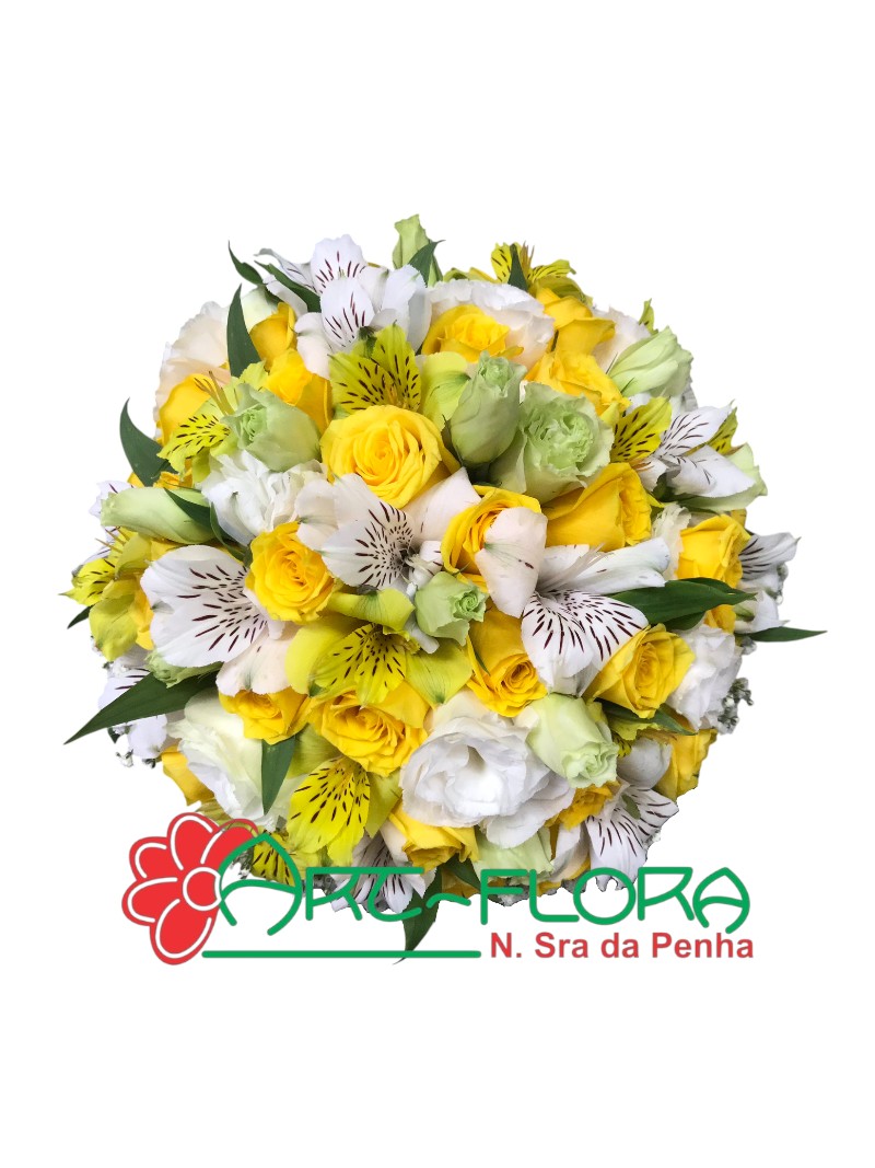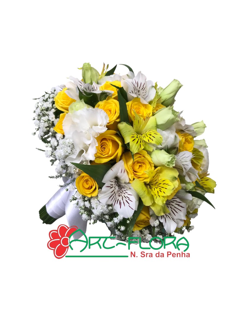 Este buquê foi criado para noivas que celebram com alegria e leveza. As rosas amarelas iluminam o caminho, as astromélias simbolizam a união e os lisiantos trazem romantismo e suavidade. Um detalhe especial para acompanhar o “sim” e eternizar um dos dias mais importantes da vida.✨ Acompanha 1 mini buquê réplica.